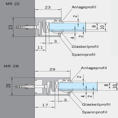 DORMA Anlageprofil 2,8 mm für 6 mm ESG, grau