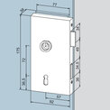 Schloss mit Drückerführung, Buntbart, ohne Wechsel, 2 Schlüssel, für 8 bzw. 10 mm Glasdicke.