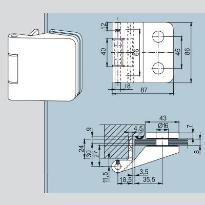 DORMA Junior Office - LM-Türband mit Rahmenteil zum Einlassen in Holzzarge