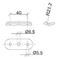für Rundmaterial Ø 12 mm, für Rundrohr Ø 42,4 mm, Bohrungen gesenkt 1 x 6,5 mm 2 x 6 mm, Oberfläche Korn 320, V2A