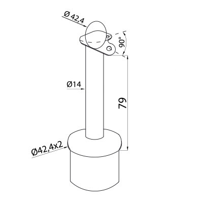 Handlaufträger 90° für Pfosten Ø 42,4 mm, zur Verklebung, Trägerplatte starr