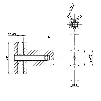 Handlaufträger zur Befestigung an Glas, Trägerplatte variabel