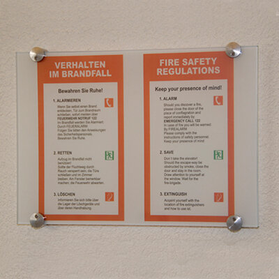Montagefertige ESG - Schilder 2 x 3 mm ohne Bohrung.