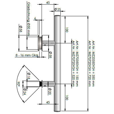 inkl. Befestigung, für Glasdicke 8 - 16 mm