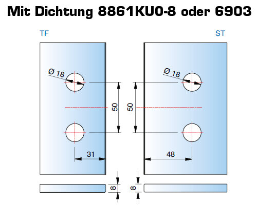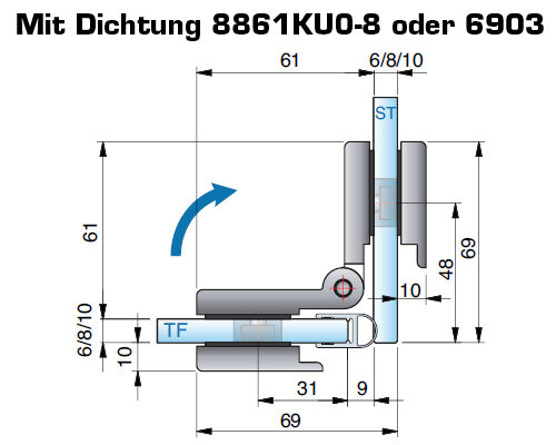maximale(s) Türgröße bei 8 mm 1000 x 2000 mm, Türgewicht 40 kg / Bandpaar