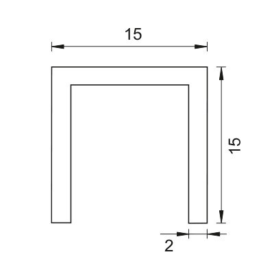 ***U-Profil, 15 x 15 x 15 x 2 mm, samtiert, für Schiebetürsystem 2100 und 2200