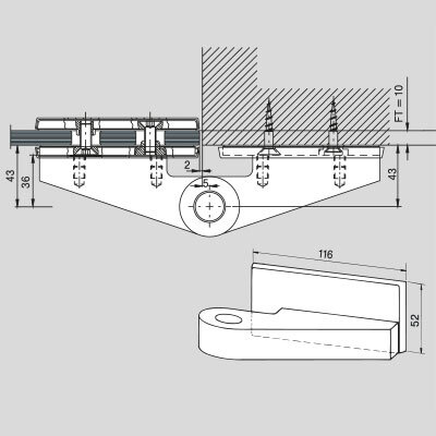 DORMA EA, Oberer Beschlag mit Band für Wandbefestigung für Türen ohne Falz, links