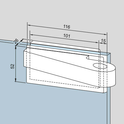 seitlich gekürzte Gegenplatte für 15 mm freie Glaskante, für 10 mm ESG