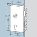 Schloss mit Drückerführung, vorgerichtet für Profilzylinder, mit Wechsel, Behördenausführung, für 8 bis 10 mm Glasdicke.