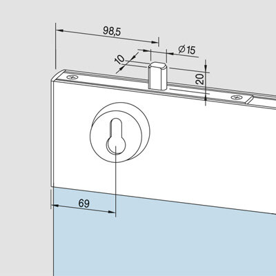 DORMA obere Pendeltürschiene, 100 mm, x = 18 mm, mit Schloß