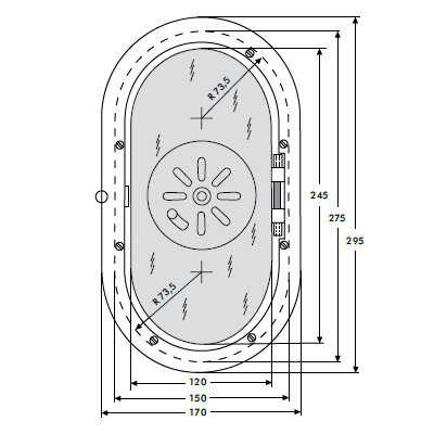 Durchmesser der Öffnung im eingebauten Zustand: Breite 120 mm, Höhe 245 mm