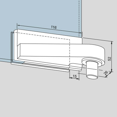 seitlich gekürzte Gegenplatte für 15 mm freie Glaskante