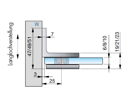 Wandbefestigung mit Langlochverstellung und Abdeckplatte(n) für verdeckte Verschraubung.