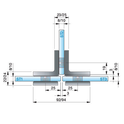 P&S 2-seitiger Winkelverbinder T-Halter Flamea+, Glas-Glas 90°