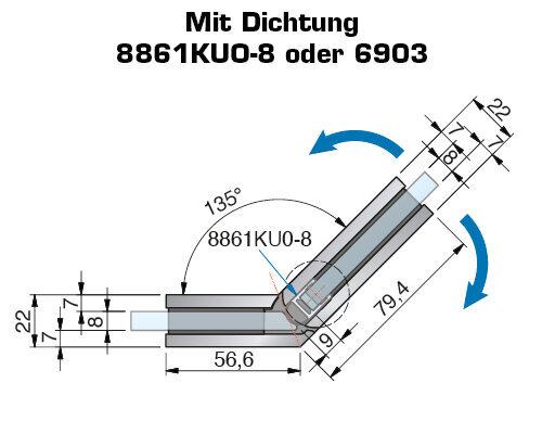 P&S Duschtürband Flamea+, Glas-Glas 135°