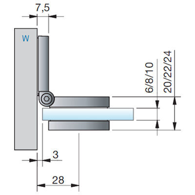 P&S Winkelverbinder Flamea+, Glas-Wand 90°, verstellbar