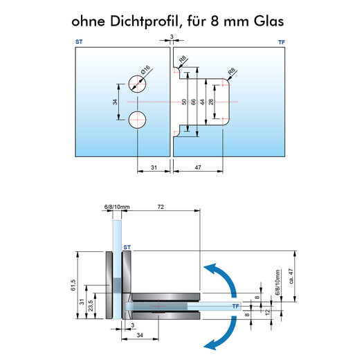 P&S Duschtürband Flamea pro mini, Glas-Glas 90°