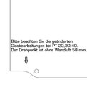 Der Drehpunkt ist ohne Wandluft 58 mm.