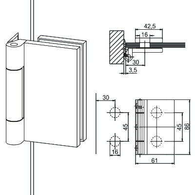 fri-line® LM-Türband für zargenunabhängige Türen mit Bandlappen, eckig