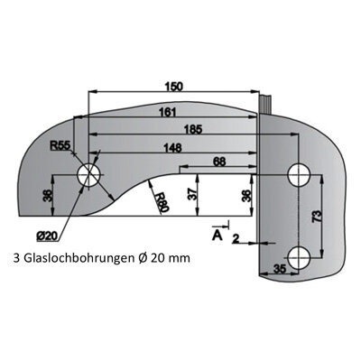 fri-line® PT40 Winkeloberlichtbeschlag für 10-12 mm ESG