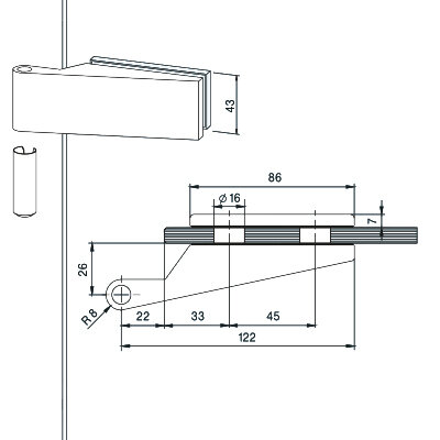 fri-line® Studio-Türband light, eckig, für 8 mm Glas mit Hülse