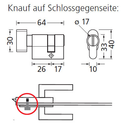 fri-line® Knaufzylinder WC, 26/17, Montage Schloss-Gegenseite