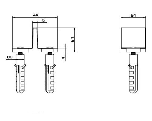 gerichtet für 1 Schiebeflügel, Montage an Wand