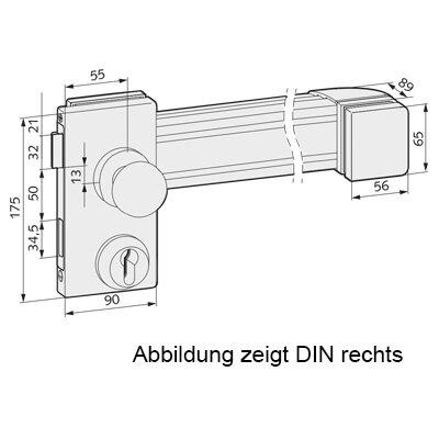PZ-Schloss mit Druckstange, eckige Form, Panikfunktion E, rechts auswärts öffnend