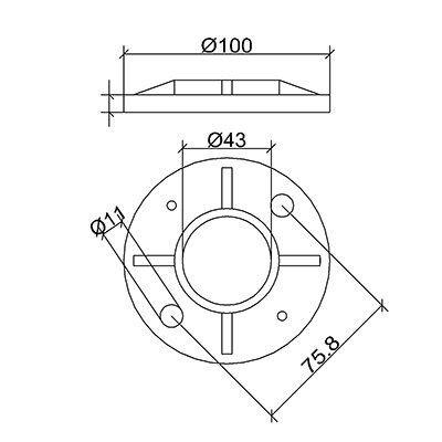 Montageplatte Ø 100 mm für Rundrohr, Bodenbefestigung