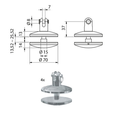 4 x Art.-Nr. 1926VA-16 Glasplattenhalter mit Öse