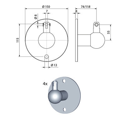 4 x Art.-Nr. 1910VA Wand-Stangenbefestigung