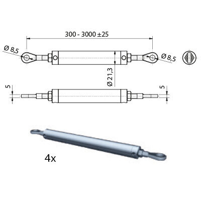 4 x Art.-Nr. 1920VA Stangenverbindung mit 2 Ösen