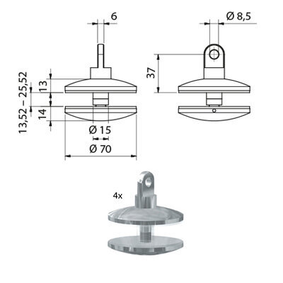 4 x Art.-Nr. 1926VA-24 Glasplattenhalter mit Öse