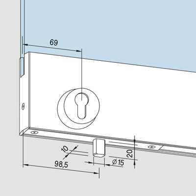 DORMA untere Pendeltürschiene, 76,5 mm, für BTS, x = 18 mm, mit Schloß