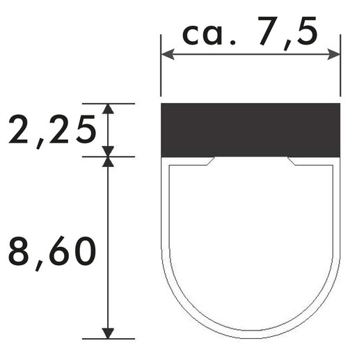 Streifdichtung zum Aufkleben, 8-12 mm ESG, Länge 6000 mm