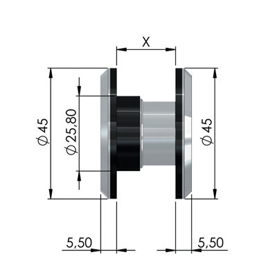 m-line Punkthalter Ø 45 mm, Wandabstand 5,5 mm, Glasdicke 24,76 mm
