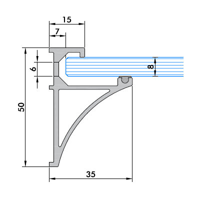 Maße: Höhe: 50 mm, Tiefe: 35 mm, maximale Lagerlänge: 3000 mm
