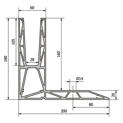 | 1 Stück | 5000295 | ***ONLEVEL Bodenprofil mit Lasche TL - 3120 Hohlkammerprofil, LM EV1 natur eloxiert |