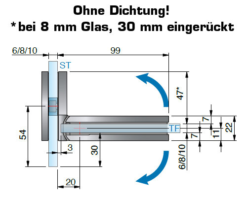 maximale(s) Türgröße bei 8 mm 1000 x 2000 mm, Türgewicht 42 kg / Bandpaar