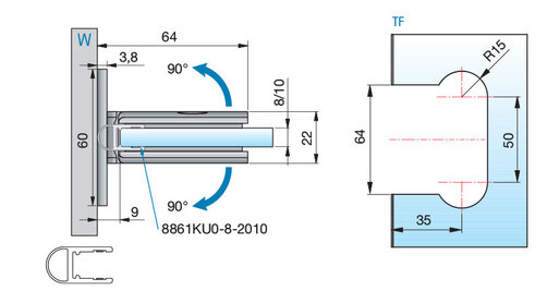 P&S Duschtürband Pontere, beidseitige Wandmontage 90°