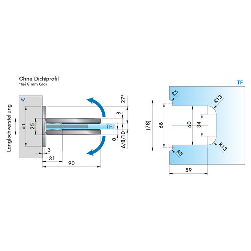 P&S Duschtürband Pontere+, beidseitige Wandmontage 90°
