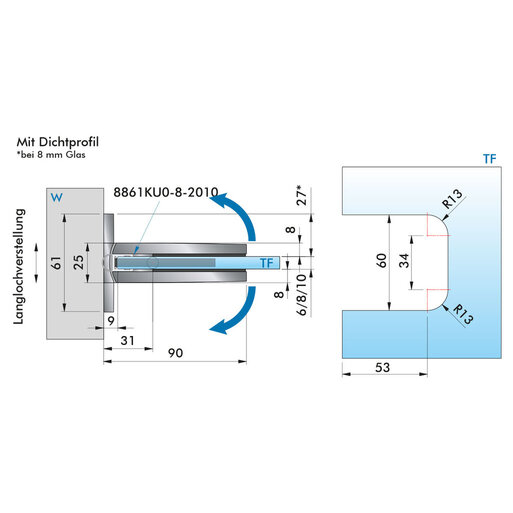 P&S Duschtürband Pontere+, beidseitige Wandmontage 90°