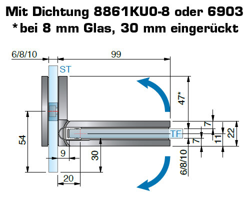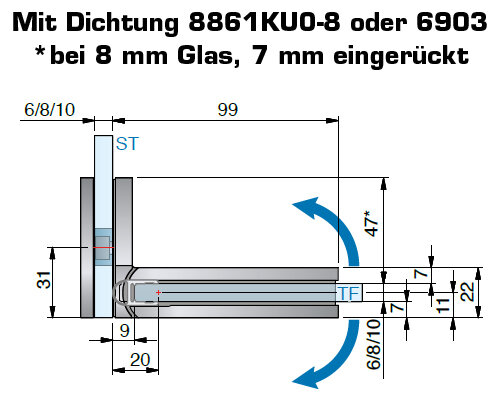 maximale(s) Türgröße bei 8 mm 1000 x 2000 mm, Türgewicht 42 kg / Bandpaar