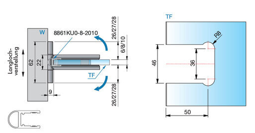 maximale(s) Türgröße bei 8 mm 1000 x 2000 mm,
