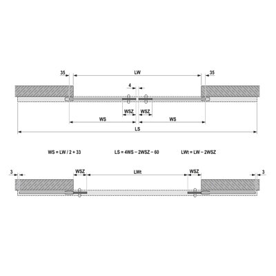 für Türgewicht von 20 kg bis 50 kg je Schiebeflügel