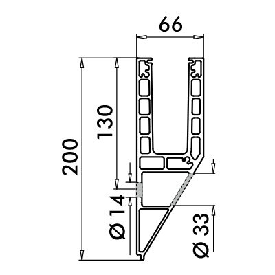 2 Lochbohrungen Ø 14 mm