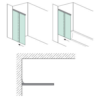 Die Bestimmung "rechts" und "links" erfolgt immer bei Blick in die geöffnete Laufschiene, also aus dem Inneren der Dusche bzw. Badewanne.