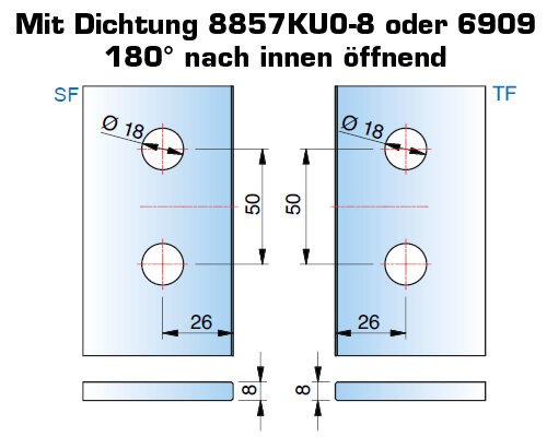 maximale(s) Türgröße bei 8 mm 1000 x 2000 mm, Türgewicht 40 kg / Bandpaar