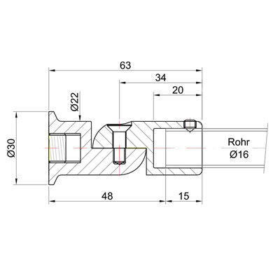fri-line® beweglicher Wandanschluß 180°, für Stabistangen Ø 16 mm