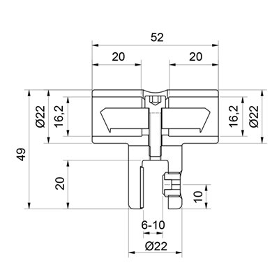 Glasanschluss-T-Stück, Seitenteil, beidseitig